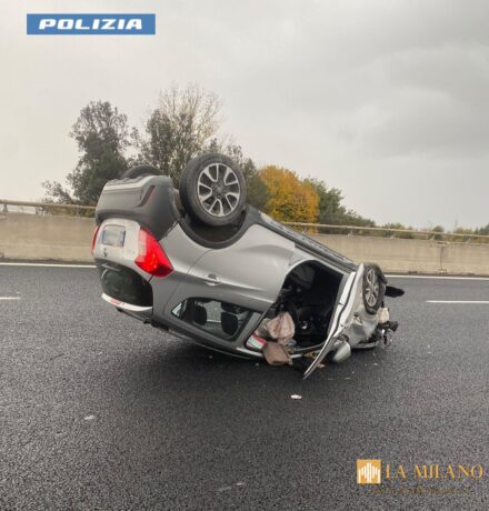 Roma, auto in fiamme ribaltata sull’Autostrada A1. Anziana salvata da un poliziotto fuori servizio